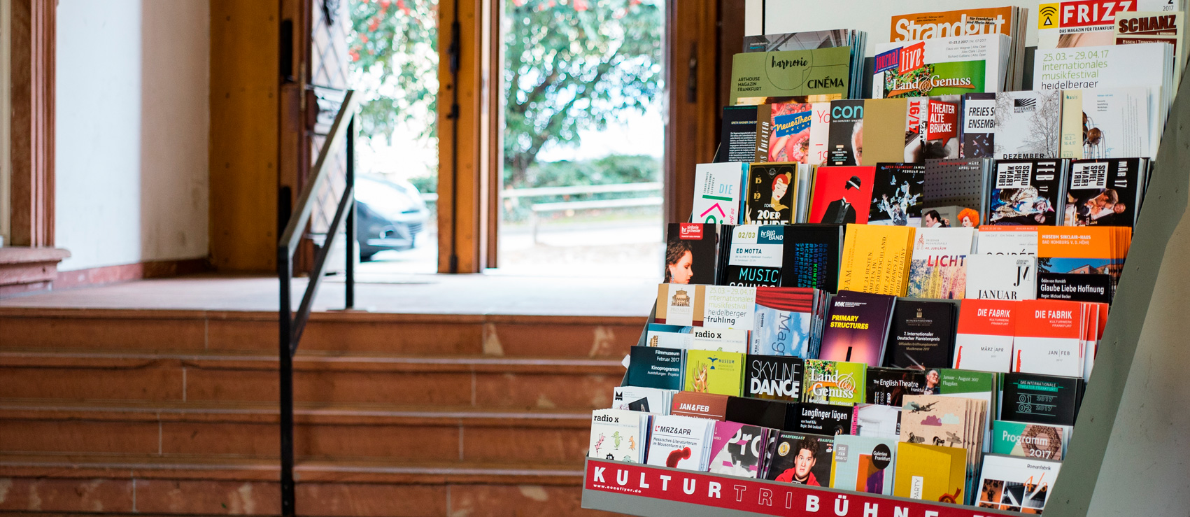 Ü ber 1000 kulturaffine Locations konnten wir, das Team von ECCO!, in den letzten 17 Jahren für Sie im Rhein-Main-Gebiet aufspüren. Unser Ziel waren Orte, wo sich kulturinteressierte Menschen aufhalten sowie Hotspots, die beim Ausgehpublikum und in der Szene beliebt sind. Bei Wind und Wetter fuhren wir also hinaus und haben gesucht. Hier überall finden Sie nun unsere Kulturprogramme: